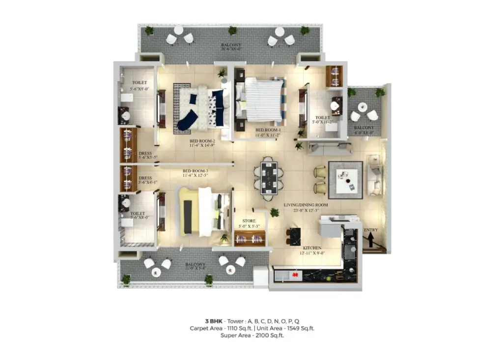 Live in comfort and style with our spacious and well-designed 3 BHK apartments that offer a perfect blend of functionality and luxury.