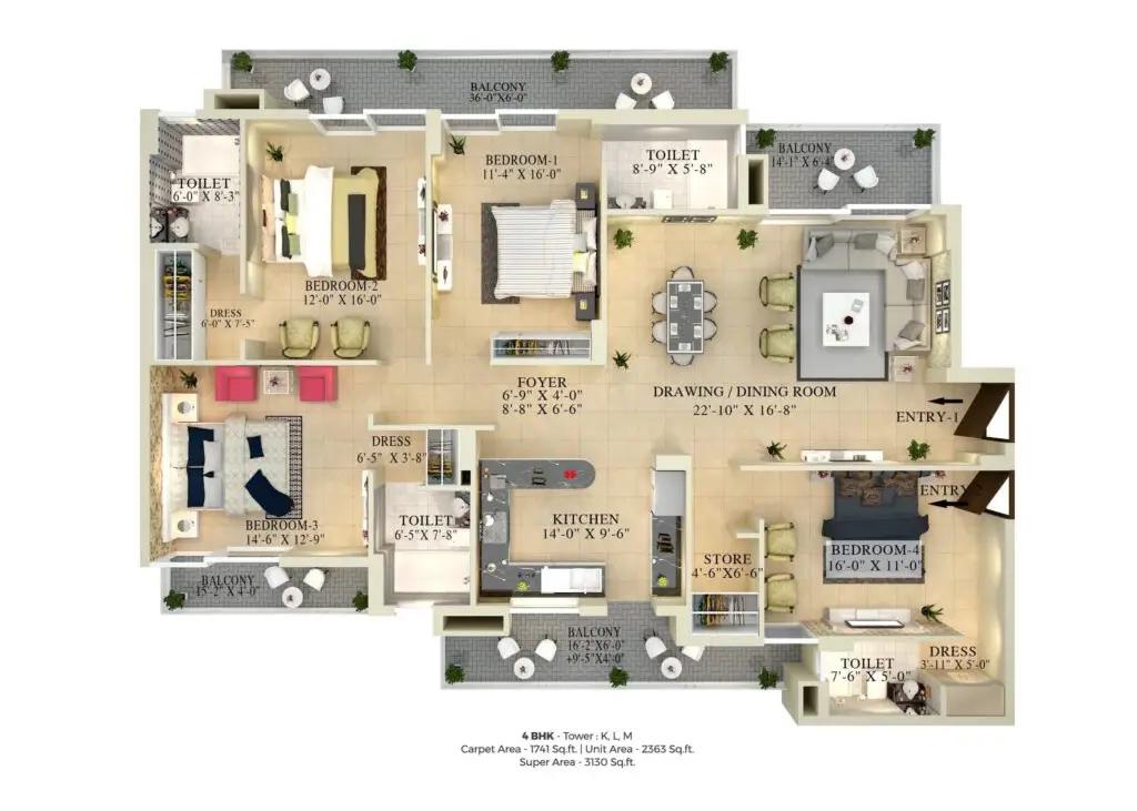 Indulge in the ultimate luxury living experience with our designed 4 BHK apartments that offer a perfect combination of space, comfort, and sophistication.