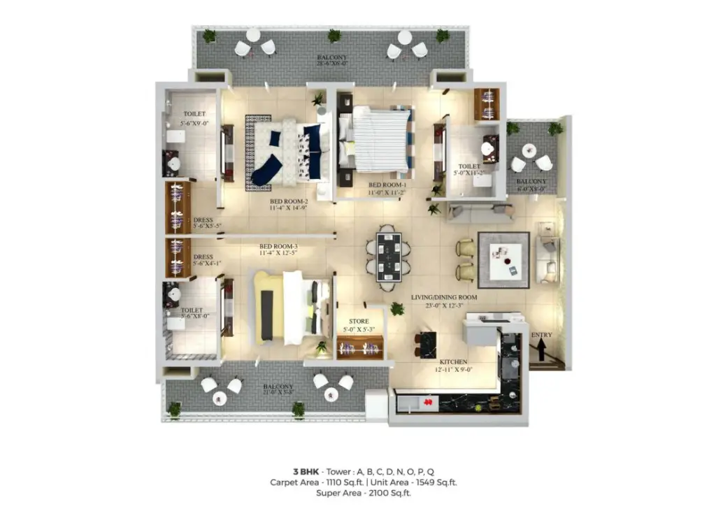 3 BHK (2100 sqft.)