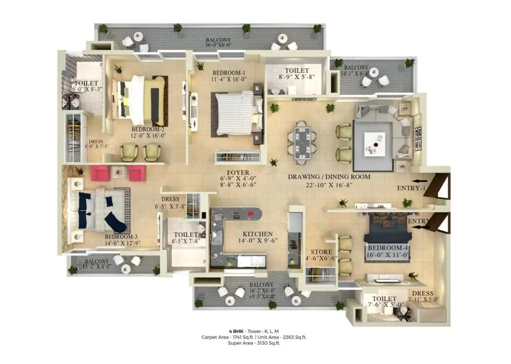 Indulge in the ultimate luxury living experience with our designed 4 BHK apartments that offer a perfect combination of space, comfort, and sophistication.