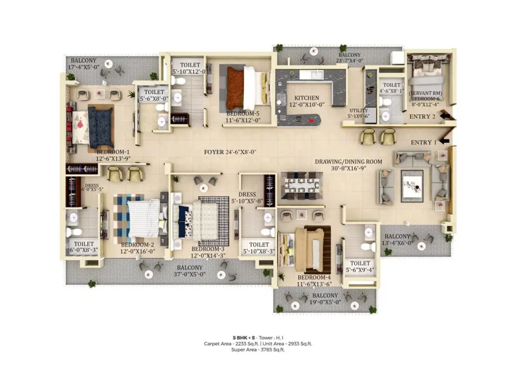 Elevate your lifestyle with our luxurious 5 BHK (3785 sqft.) that offer breathtaking views and top-of-the-line amenities.